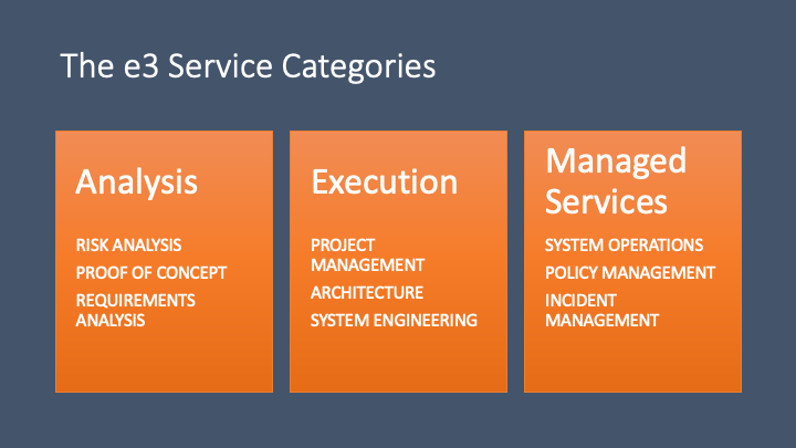 A e3 não oferece apenas manutenção e suporte para as soluções entregues, mas também contratos de serviços gerenciados para a gestão de políticas DLP e gerenciamento de incidentes.